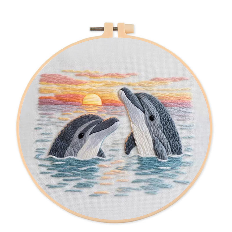 Rubbyoo Embroidery Kit - Cute Dolphins | Wall Hanging Decoration