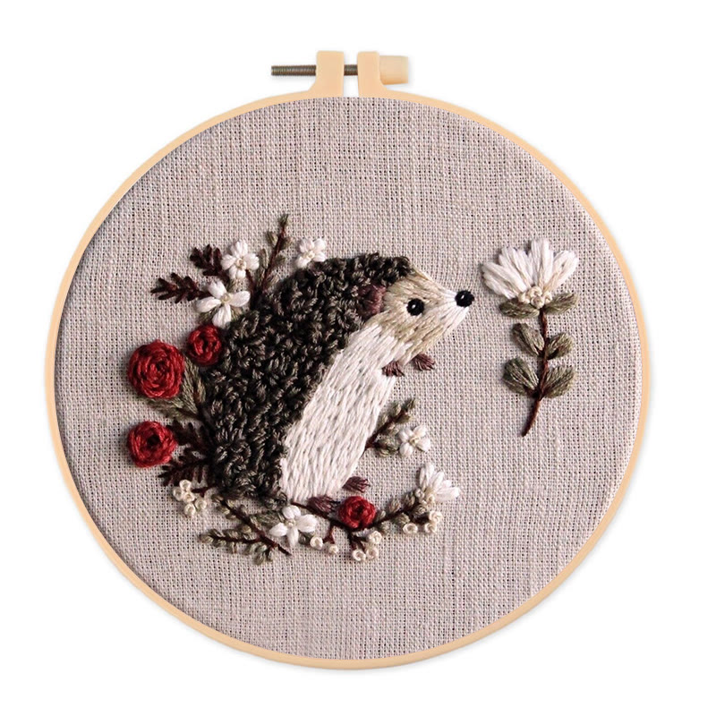 Rubbyoo Embroidery Kit - Floral Hedgehog | Cute Animal | Needle Craft For Beginners