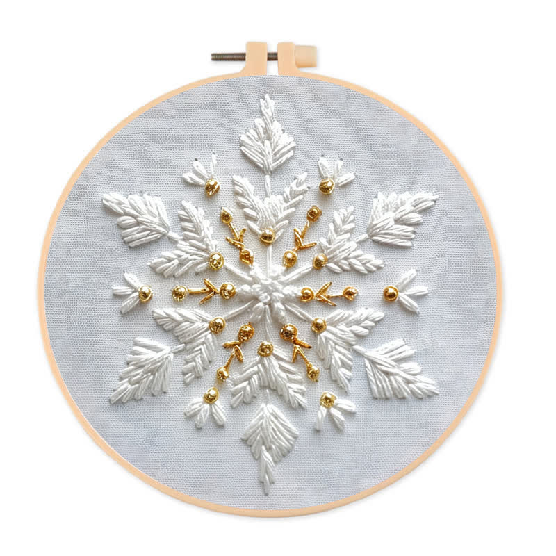 Rubbyoo Embroidery Kit - Gold and White Snowflake