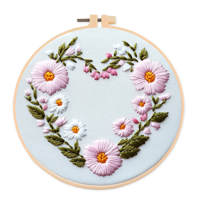 Rubbyoo Heart Embroidery Kit - Bird Pink Heart Floral Wreath | Lovely Gifting Option | Easy-to-make Diy Embroidery