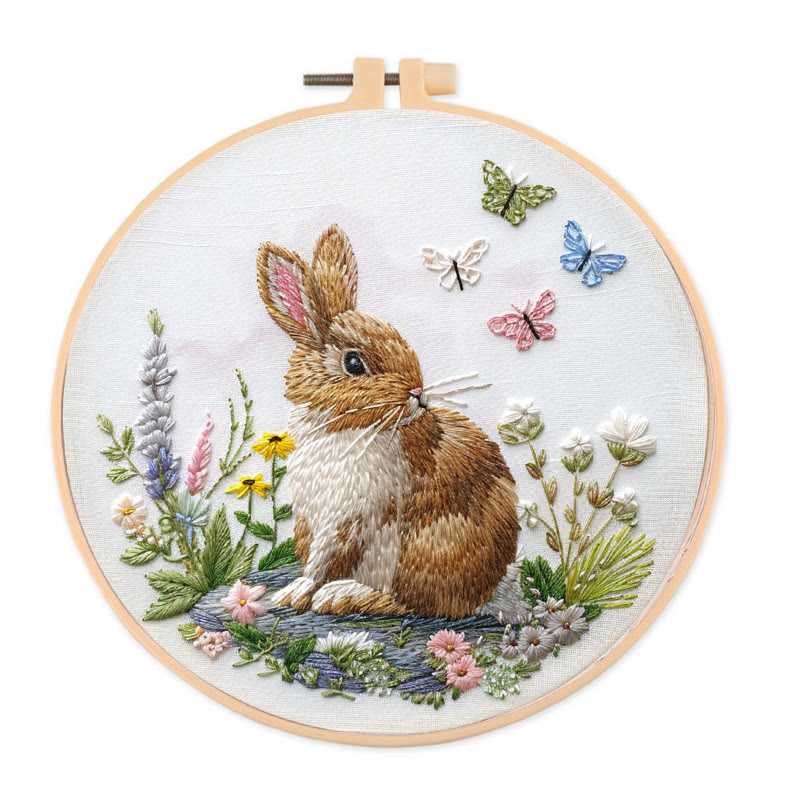 Rubbyoo Embroidery Kit - Bunny's Garden | Holiday Needlework Gift Hand Stitch