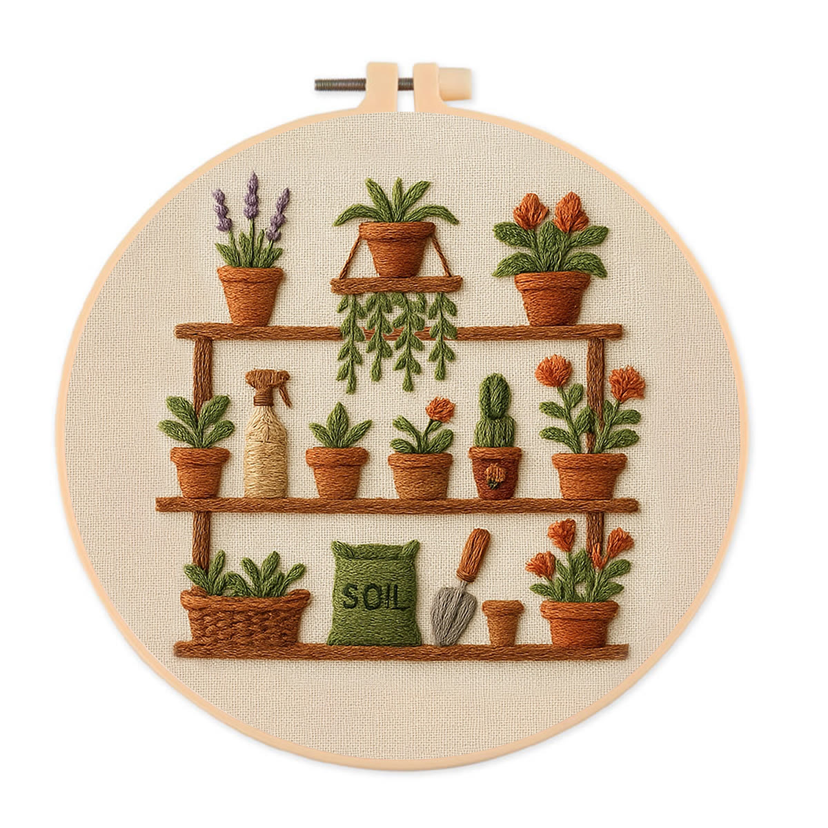 Rubbyoo Embroidery Kit - Potted Plants | Unique Home Decoration