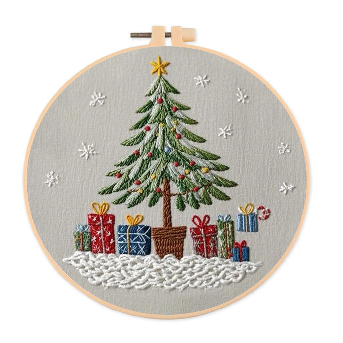 Rubbyoo Embroidery Kit- Christmas Tree With Gifts | Holiday Needlework Gift Starter Kit