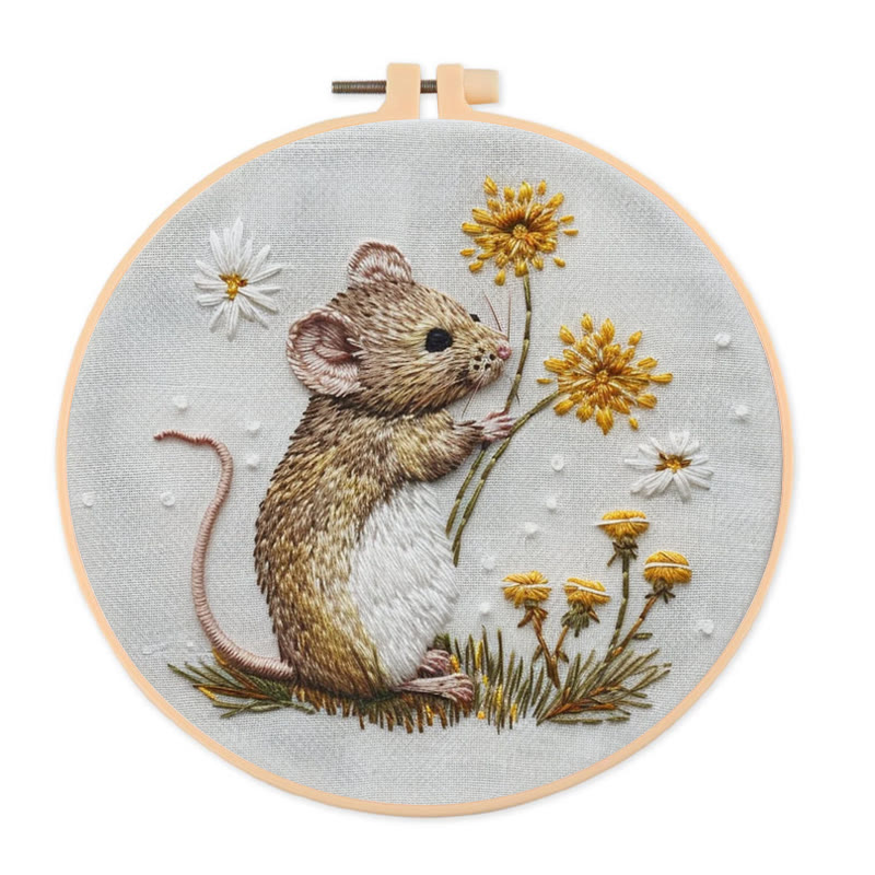 Rubbyoo Embroidery Kit - Mouse And Dandelion | Diy Craft Kit