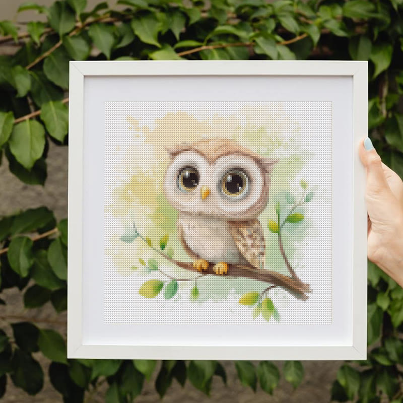 Cross Stitch Kit - Adorable Baby Owl | Easy Animal Needlework | Diy Hanging Paintings