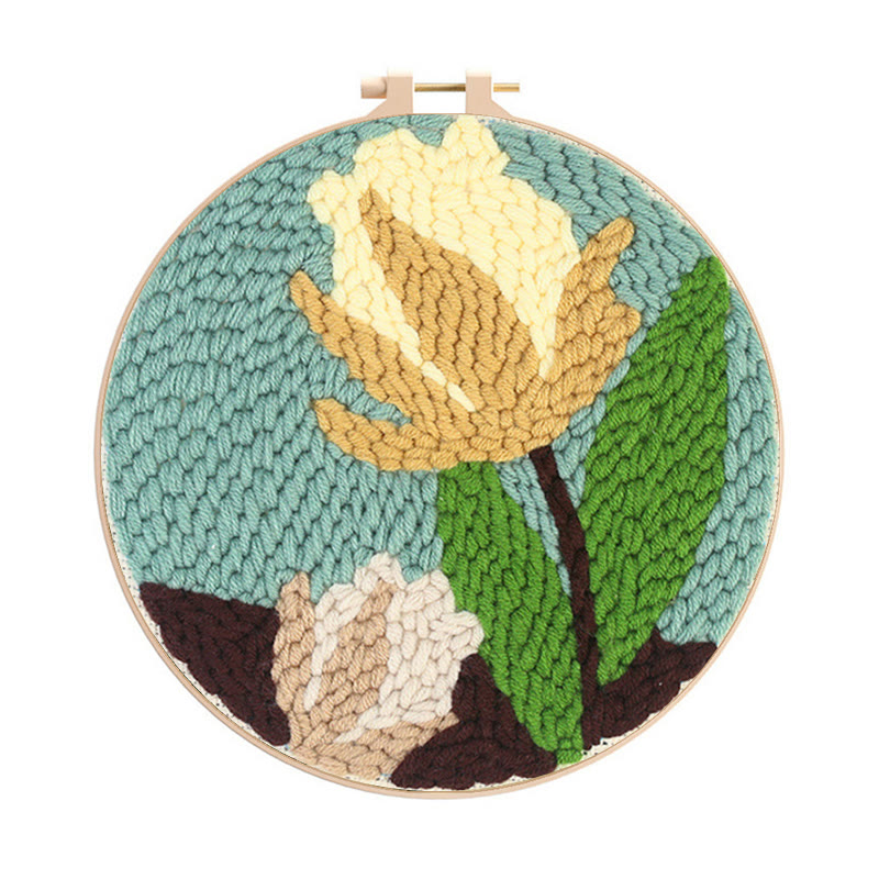 Yellow Flower Punch Needle Kit - Diy Craft Hoop | Exquisite Gift For Beginners