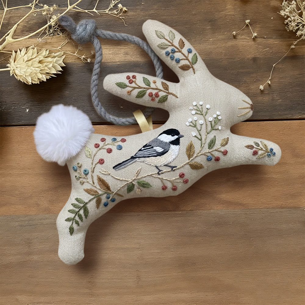Rubbyoo Rabbit Embroidery Kit - Chickadee Bird Design | Housewarming Gift | Cottagecore Room Decor