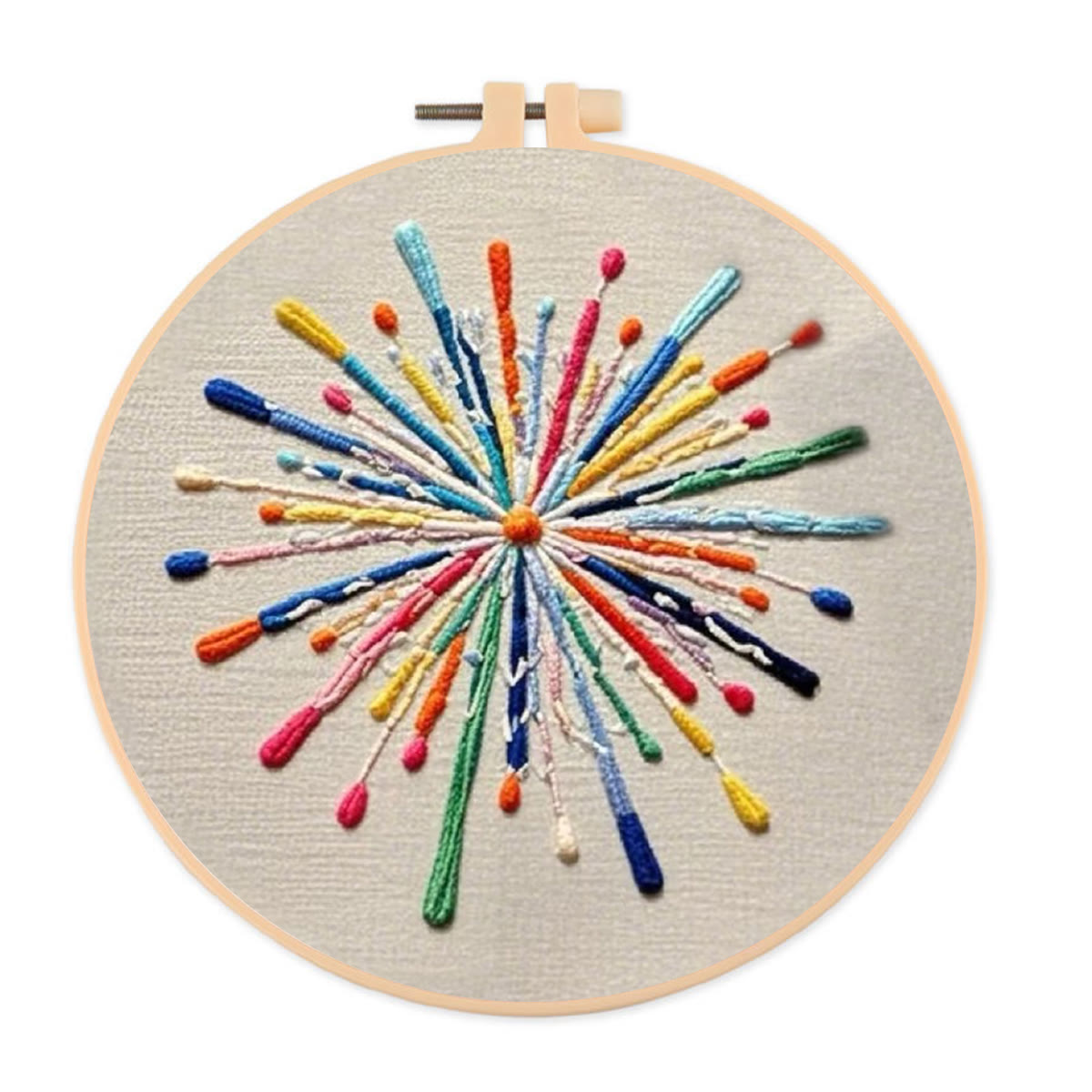 Rubbyoo Embroidery Kit- Colorful Fireworks | Hand Stitch Wall Decor For Beginners