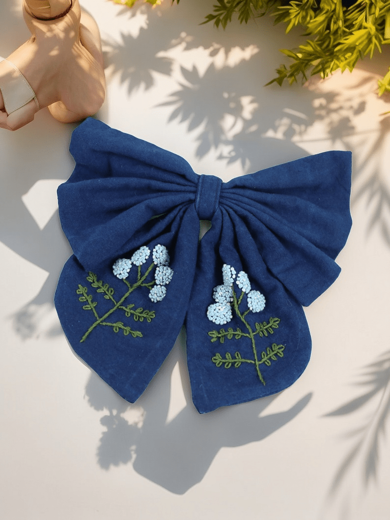 Rubbyoo Embroidery Bow Hairpin - Floral Peal Barrettes | Exquisite Hair Clip | Birthday Gifts For Her