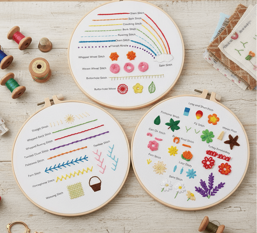 Rubbyoo 3-piece Embroidery Starter Kit - Flower Design Needlestitch | Nice Gift For Handmade Lovers
