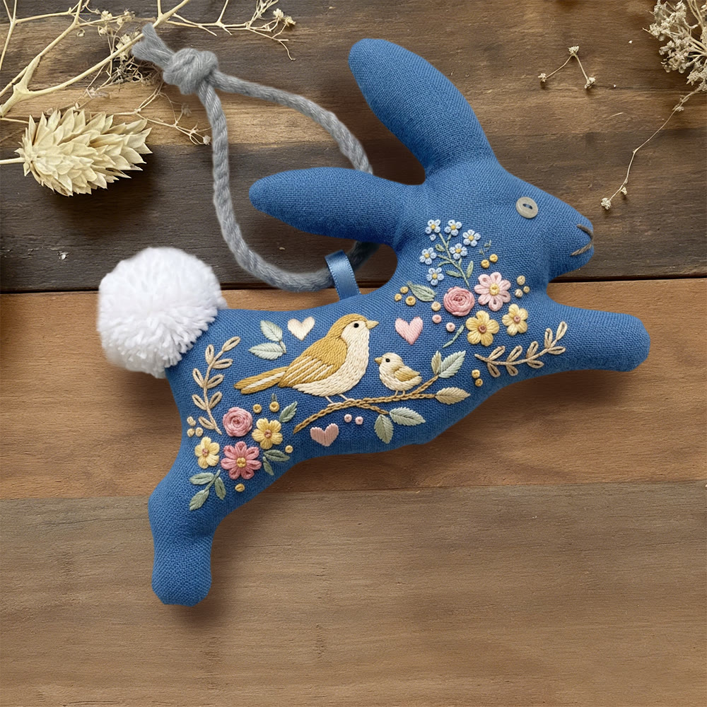 Rubbyoo Rabbit Embroidery Kit - Blue Bird Embroidery | Happy Gift For Mom | Diy Handcrafted Ornament