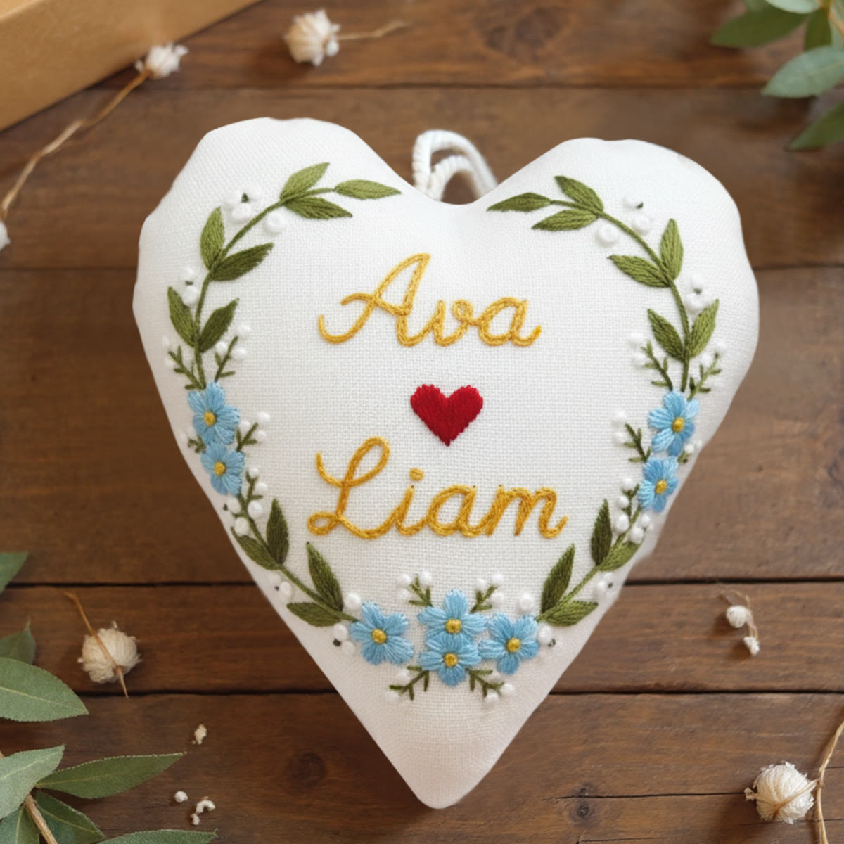 Rubbyoo Heart Embroidery Kit - Ava Liam Heart Blue Blossom | Beginner-easy Embroidery | Custom Decor Accent