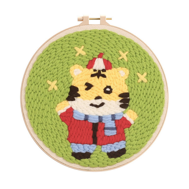Lucky Tiger Punch Needle Kit - Animal Sewing Set | Starter Needlework Crafts