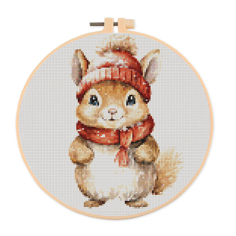 Cross Stitch Kit - Adorable Squirrel | Christmas Tree Ornament | Christmas Handmade Collection