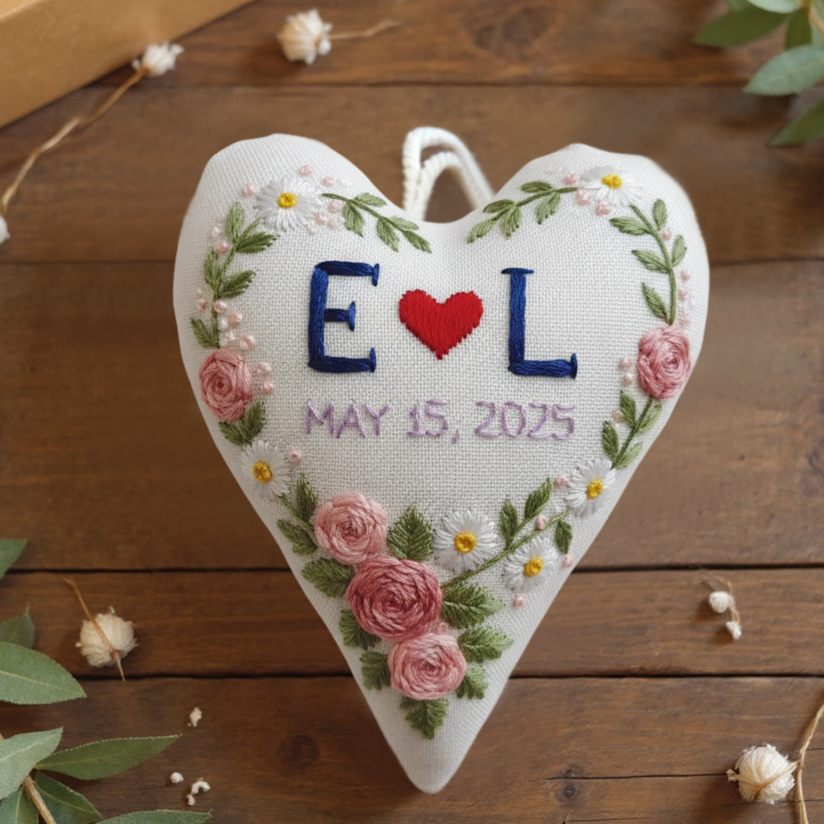 Rubbyoo Personalized Ring Bearer Pillow Embroidery Kit - Rose Wreath Monogram | Milestone Gatherings | Novice-friendly