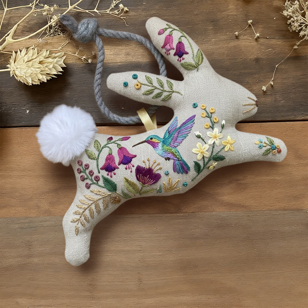 Rubbyoo Rabbit Embroidery Kit - Colorful Hummingbird | Handmade Bunny Gift | Cottagecore Garden Hanging Decor