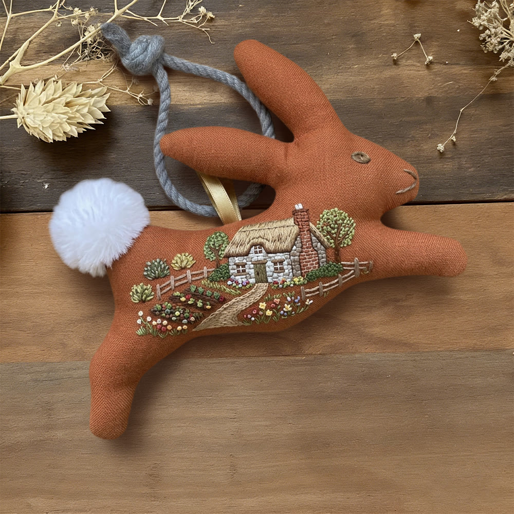 Rubbyoo Rabbit Embroidery Kit - Cozy Cottage Scene | Vintage Countryside Craft | Wall Hanging Decor
