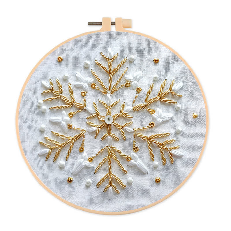 Rubbyoo Embroidery Kit - Gold and White Snowflake2