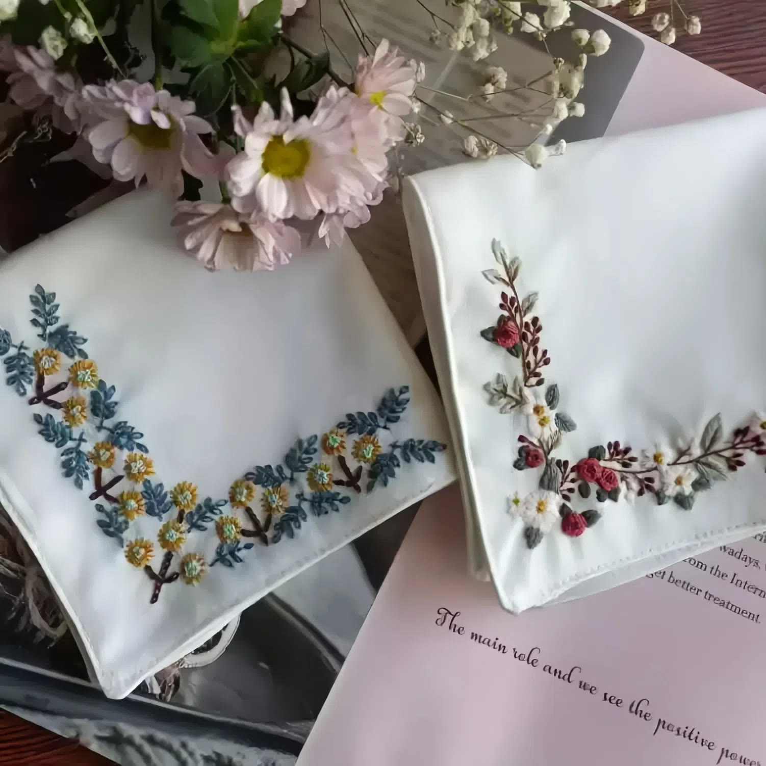 Embroidery Handkerchief Kit | Exquisite Floral Gifts | Beginner Diy Set