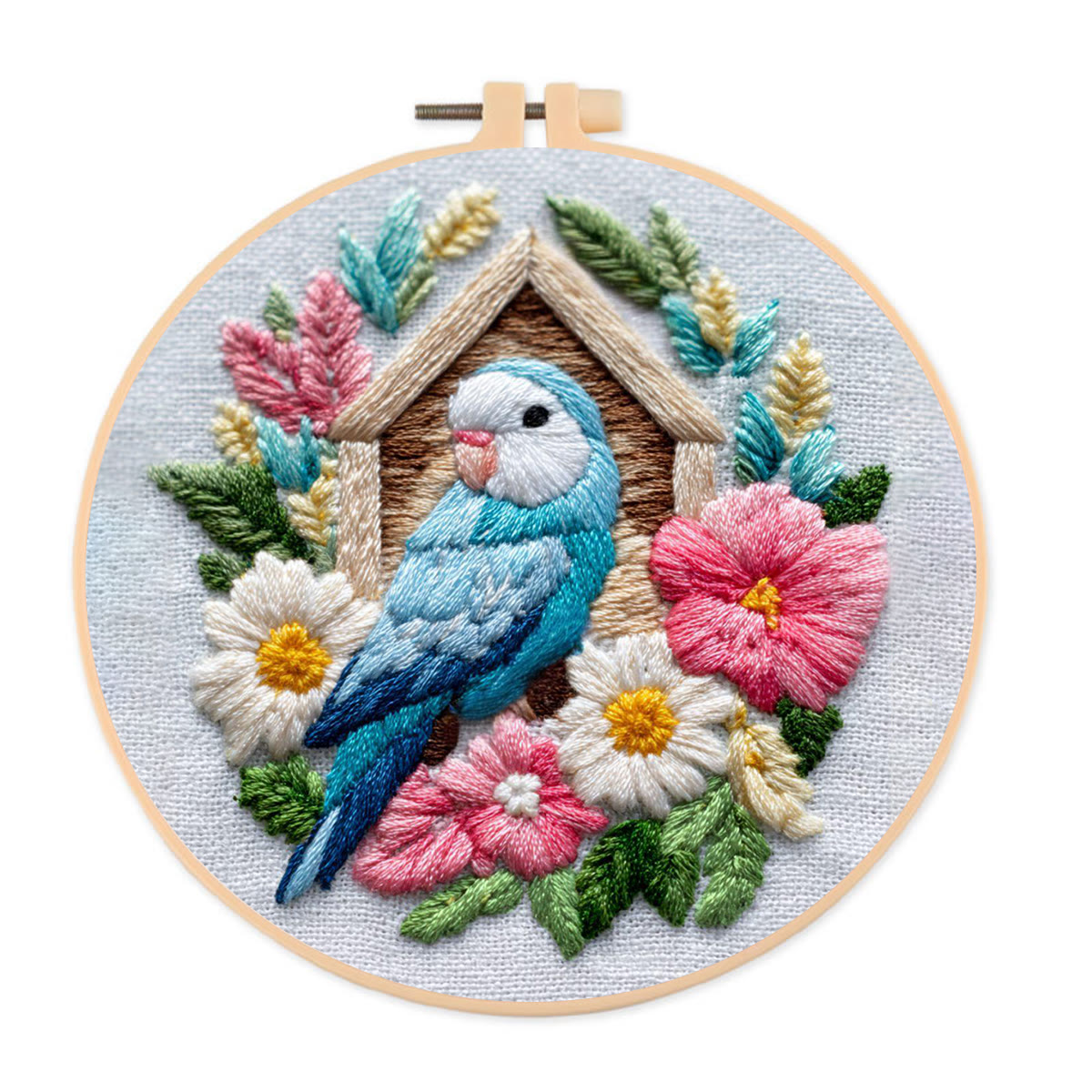Rubbyoo Embroidery Kit - Parrot And Birdhouse | Gentle Diy Project | Heartwarming Present Pick