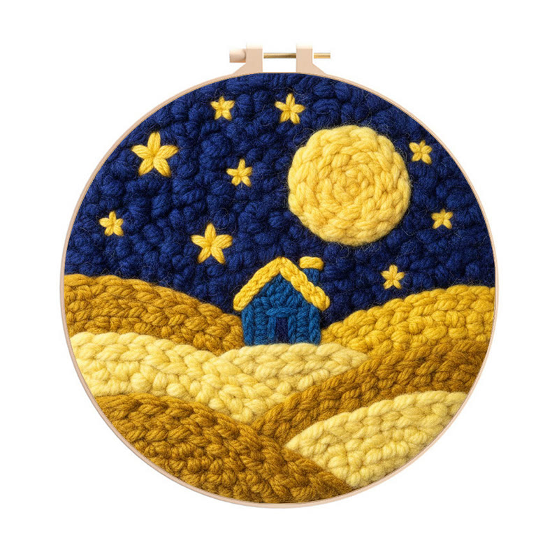 Starry Moon Cottage Nightscape Punch Needle Kit – Delicate Decor Ornament | Thoughtful Gift For Her