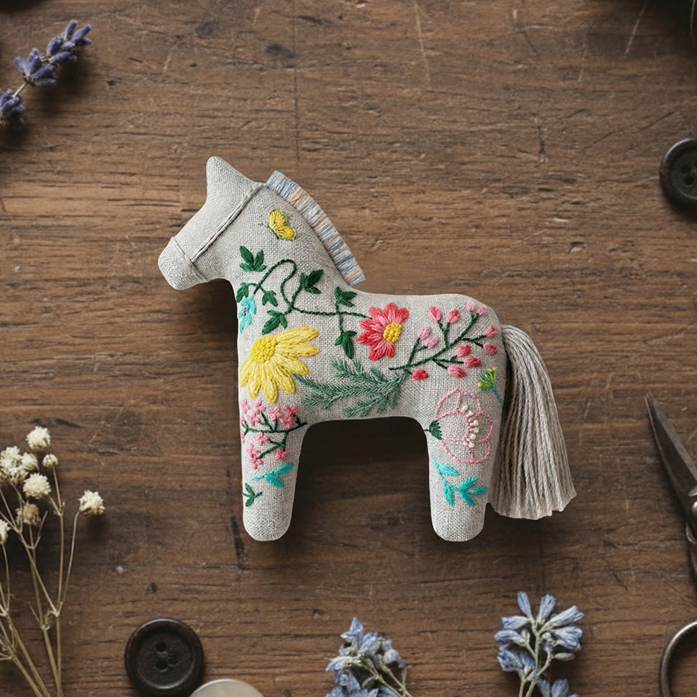 Rubbyoo Dala Horse Embroidery Kit - Blooming Flower | Home Decor Gift | Nice Bagpack Ornaments