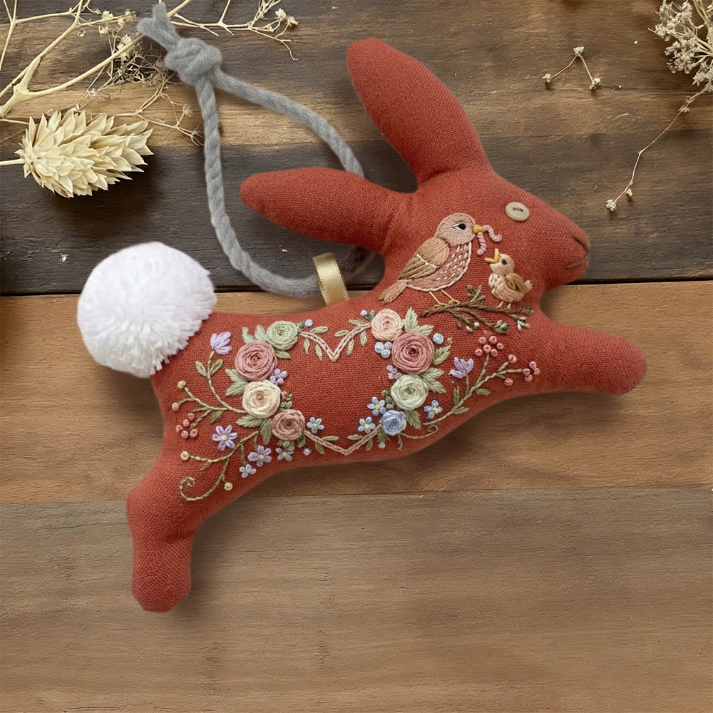 Rubbyoo Rabbit Embroidery Kit - Floral Heart Wreath And Bird | Mother's Day Gift | Colorful Room Decor