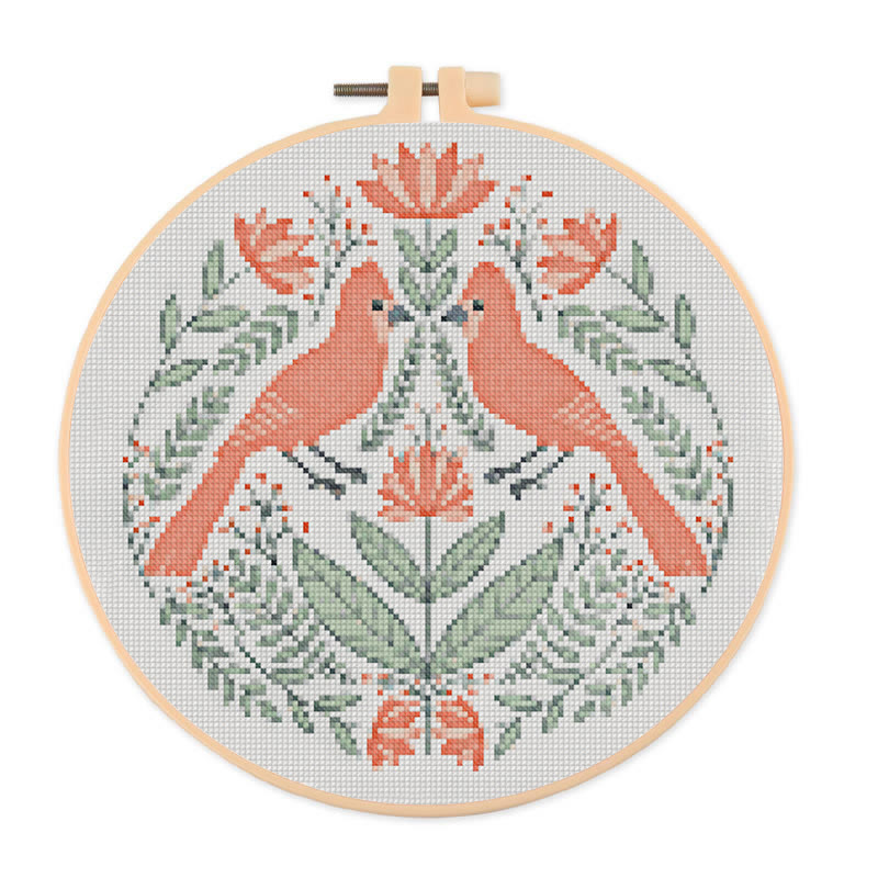 Cross Stitch Kit - Bird Couple In Love | Easy Handmade Needlework | Perfect For Home Decor