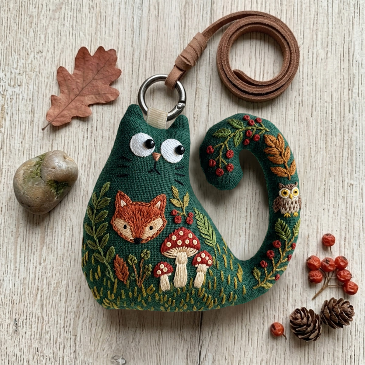Rubbyoo Cat Embroidery Kit - Red Spotted Amanita Mushrooms | Cozy Gift For Friend | Forest Fairytale Hanging Decor
