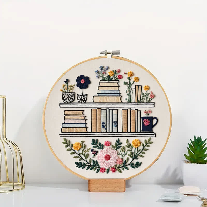 Rubbyoo Embroidery Kit - Bookshelf Book Lover DIY Craft Kit