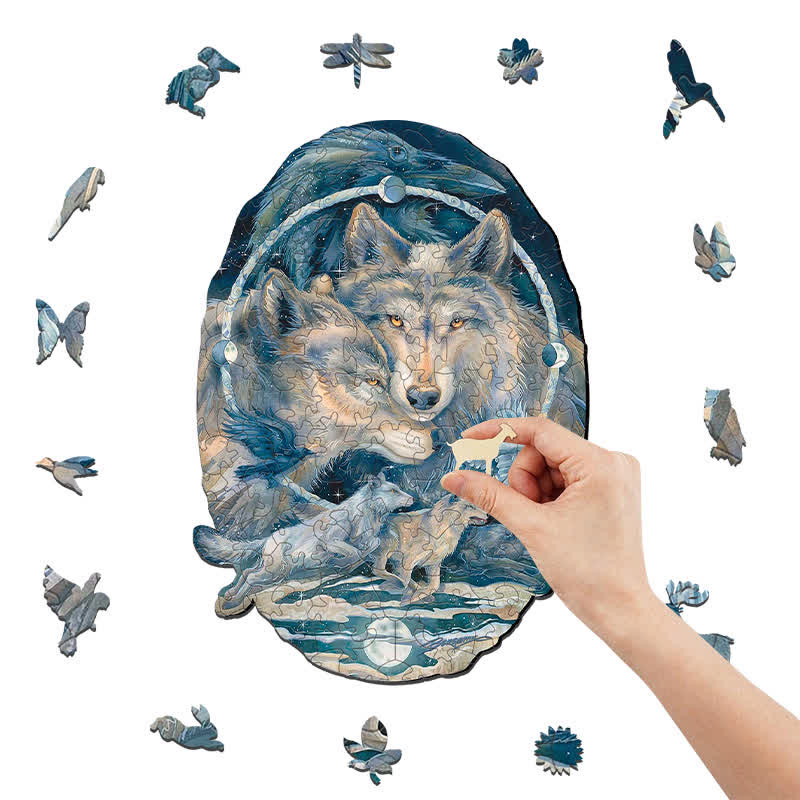 Rubbyoo In Spirit I Am Free Wolves Ravens - Wooden Jigsaw Puzzle
