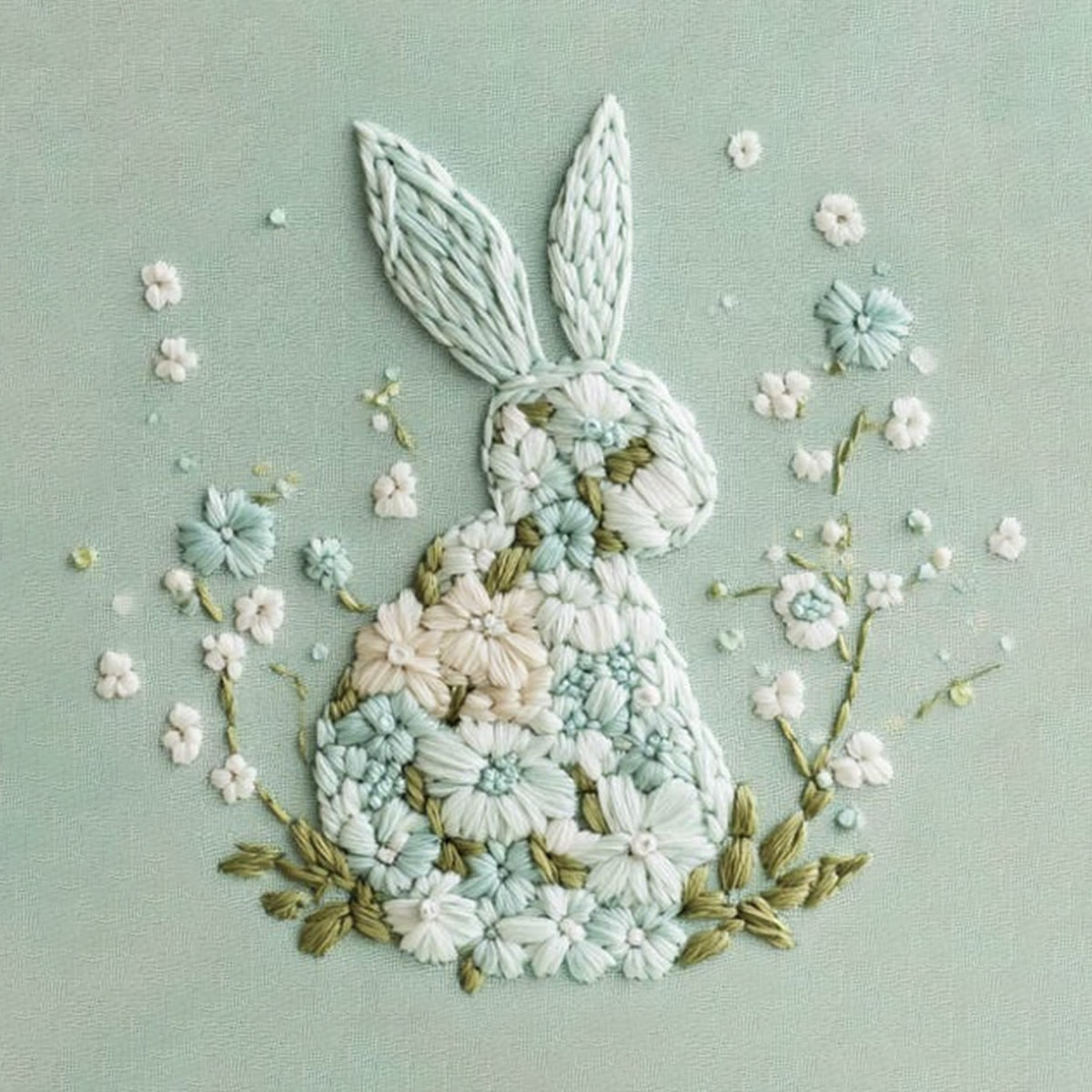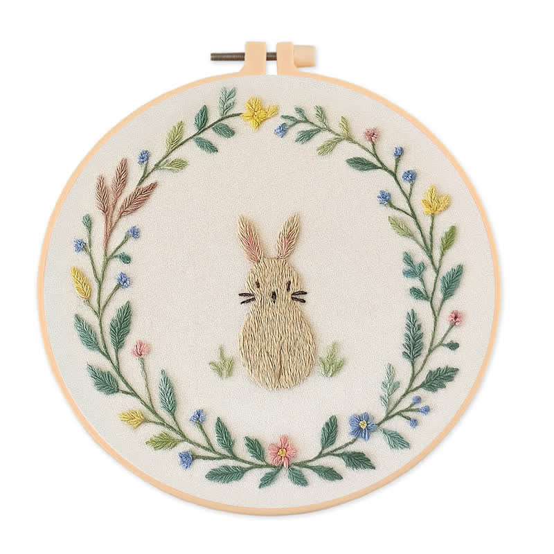 Rubbyoo Embroidery Kit - Floral Rabbit | DIY Craft Kits For Craft Lover