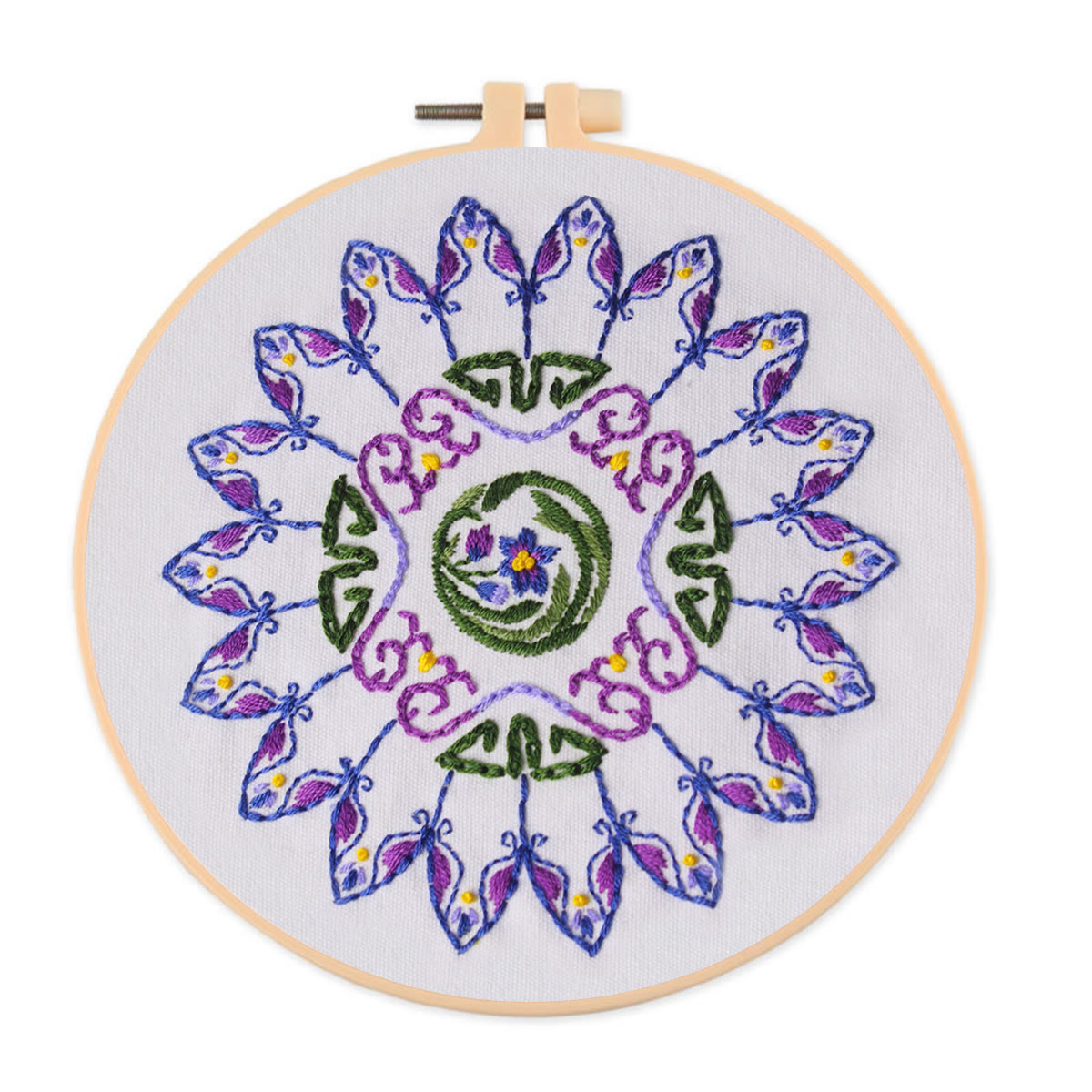Rubbyoo Embroidery Kit- Purple Flower Design | Diy Craft Kits,Hand Stitch,For Craft Lover