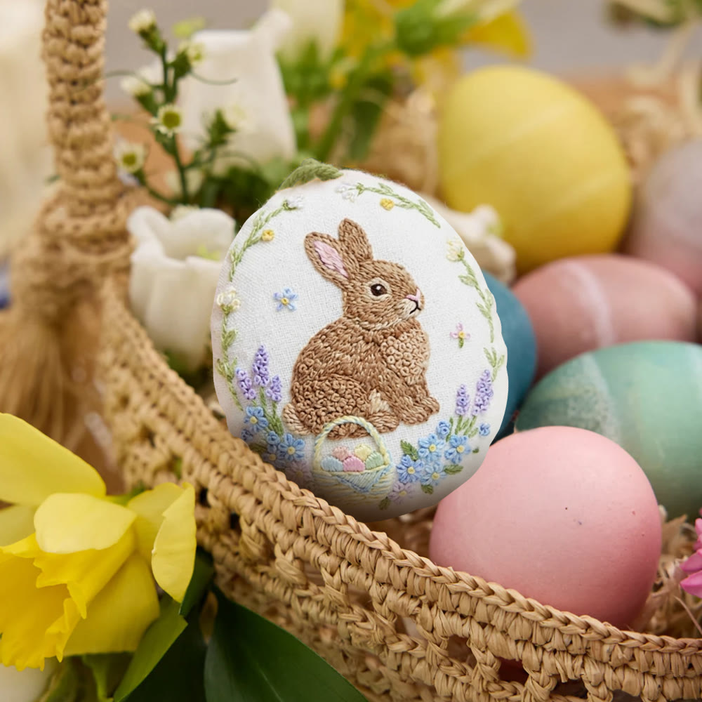 Rubbyoo Easter Egg Embroidery Kit - Cute Rabbit | Handmade Spring Craft | Easter Home Ornament