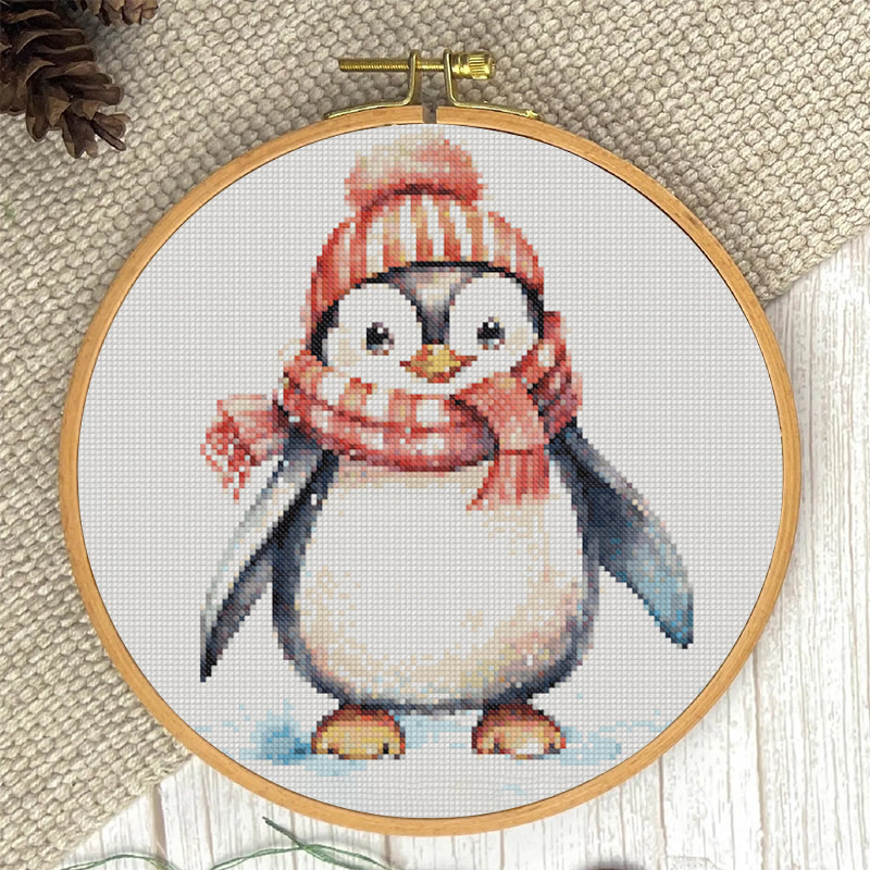 Cross Stitch Kit - Happy Penguin | Christmas Animal Gift | Diy Holiday Handmade Gifts
