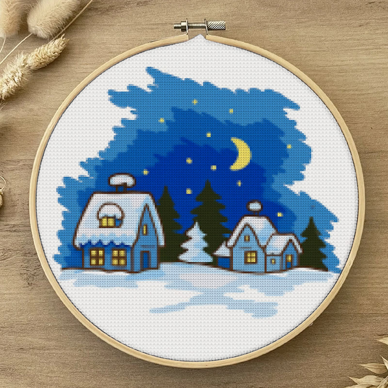 Cross Stitch Kit - Late Night Town | Landscape Stitch Artwork | Unique Wall Hanging