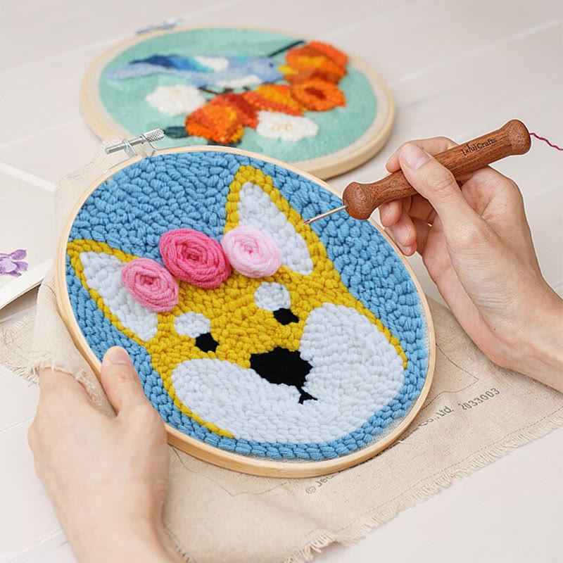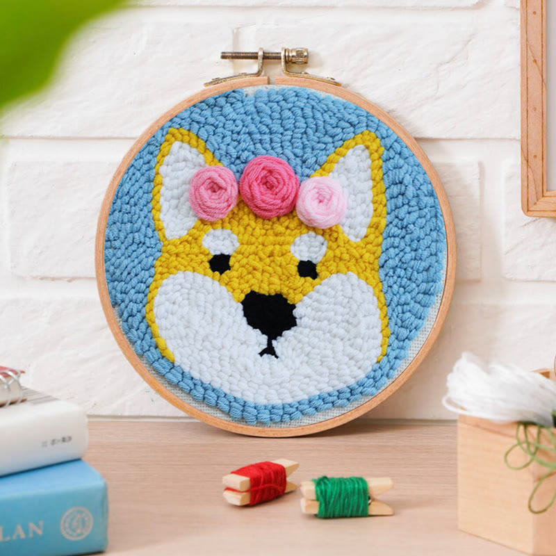 Floral Dog Punch Needle Kit - Cute Gift For Dog Lovers | Perfect Beginner Set