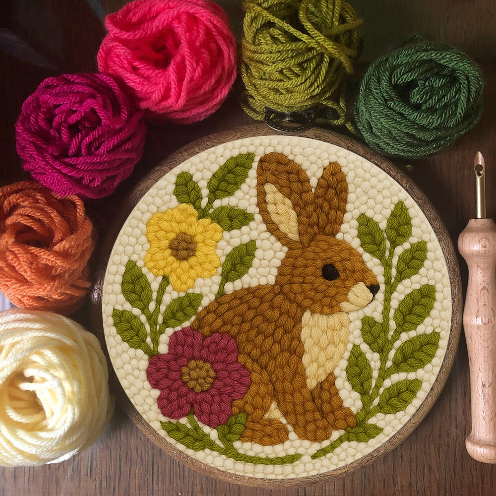 Flower Bunny Punch Needle Kit - Easy Animal Needlework | Diy Yarn Craft