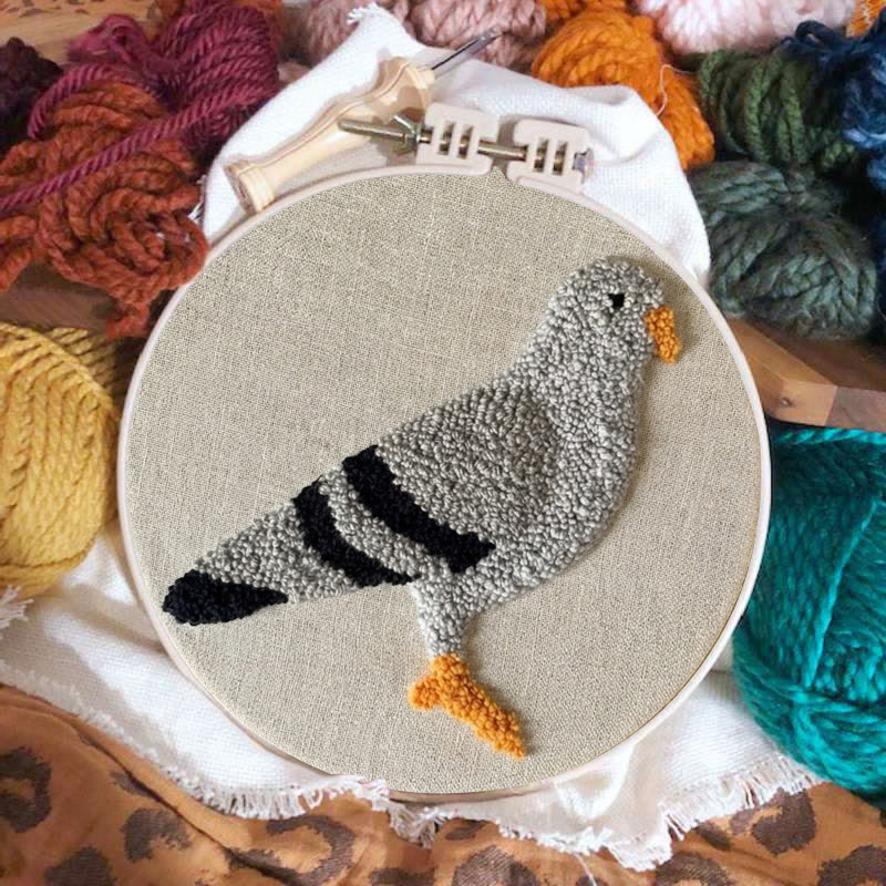 Grey Pigeon Portrait Punch Needle Kit - Simple Handwork | Minimalist Home Accent
