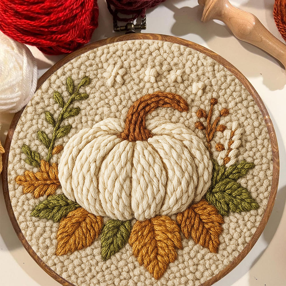 Halloween Pumpkin Punch Needle Kit - Diy Punch Needle Coaster | Art Craft For Home Decor | Handmade Needle Gift - 8 inch Hoop Kit - image 1