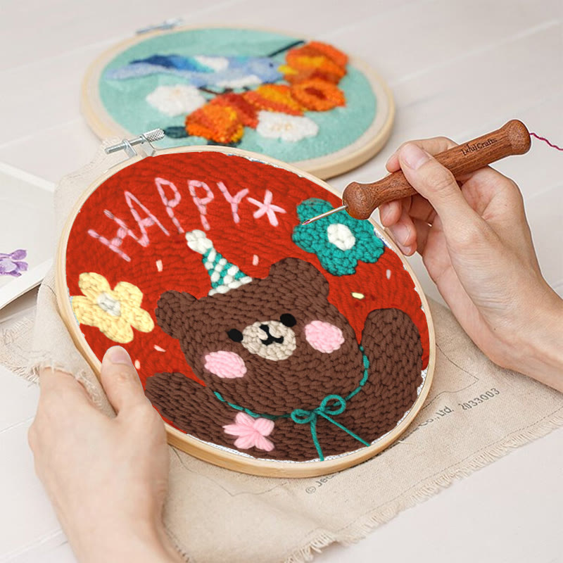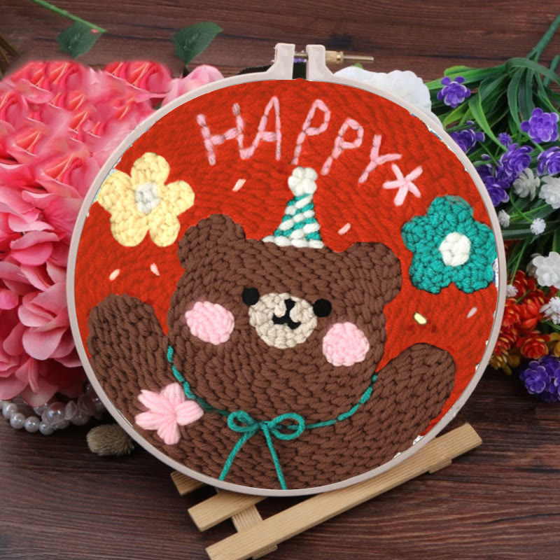 Happy Birthday Bear Punch Needle Kit - Unique Handmade Craft | Great Birthday Gifts For Friends