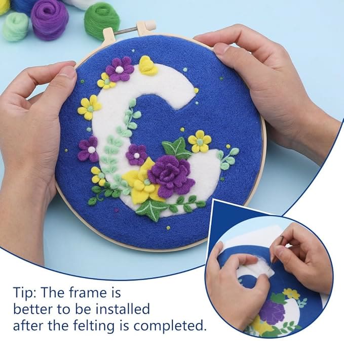 Letter C Needle Felt Kit With Frame - Diy Wool Felting Painting Set | Special Handmake Decoration