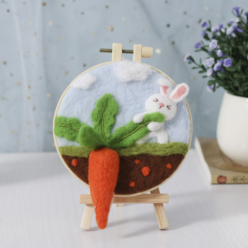 Lovely Rabbit Needle Felt Kit With Frame - Animal Needle Handicraft | Great Gift For Festival And Ornament