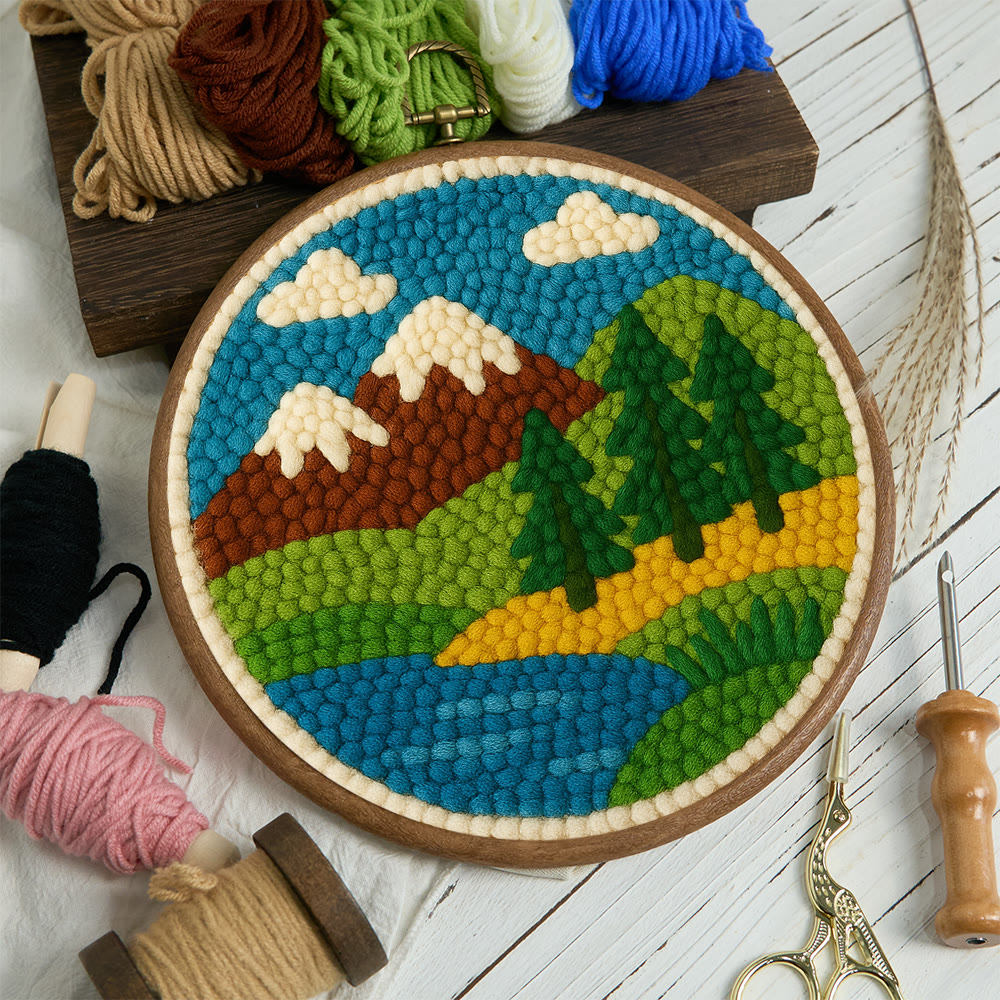 Mountain Lake Landscape Punch Needle Kit – Beginning Project | Playful Decorative Hanging