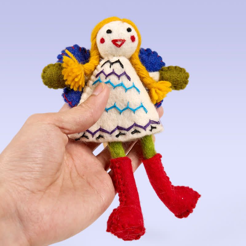 Felted Fairy/angel: Fall for our charming dolls, lovingly handmade by Rubbyoo. Each doll is crafted with care, becoming more than just decorations—they're treasured collectibles. With bendable arms, they add a playful, whimsical touch to any space.