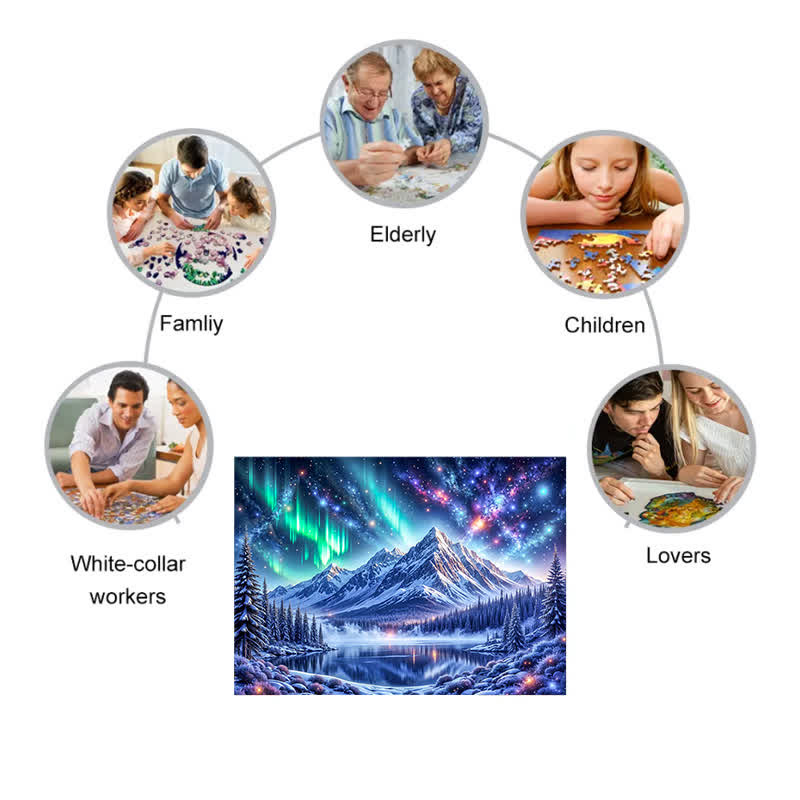 Northern Lights In The Mountains - Wooden Jigsaw Puzzle