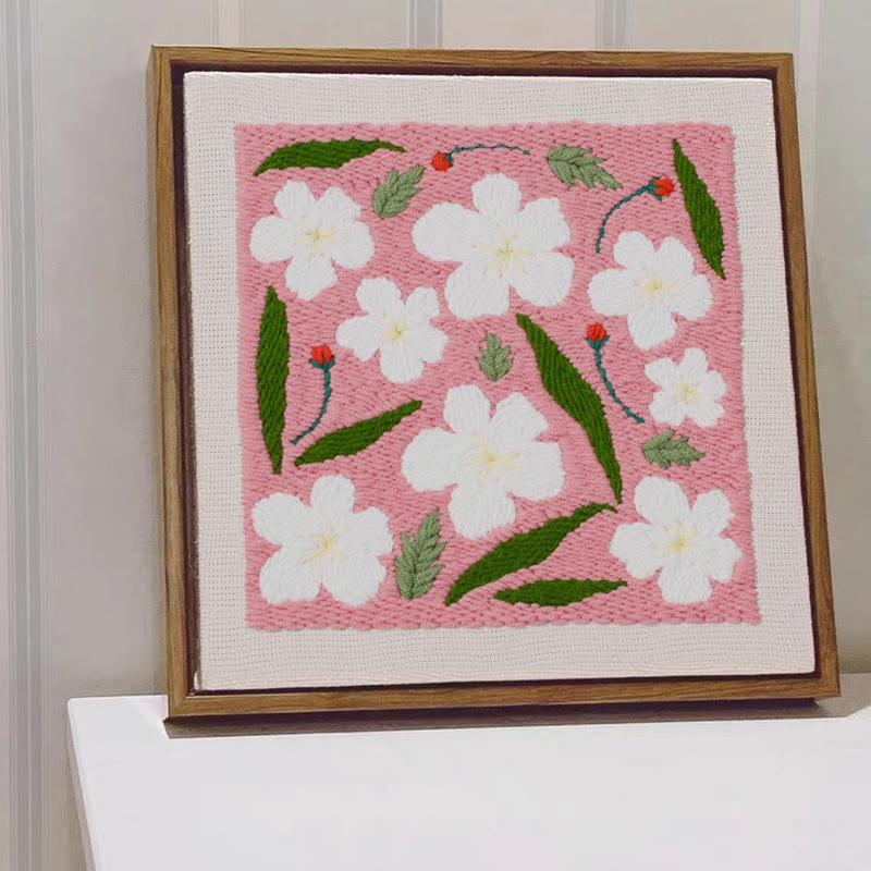 Pink Floral Square Punch Needle Kit - Diy Desktop Decoration | Good Gift For Housewarming