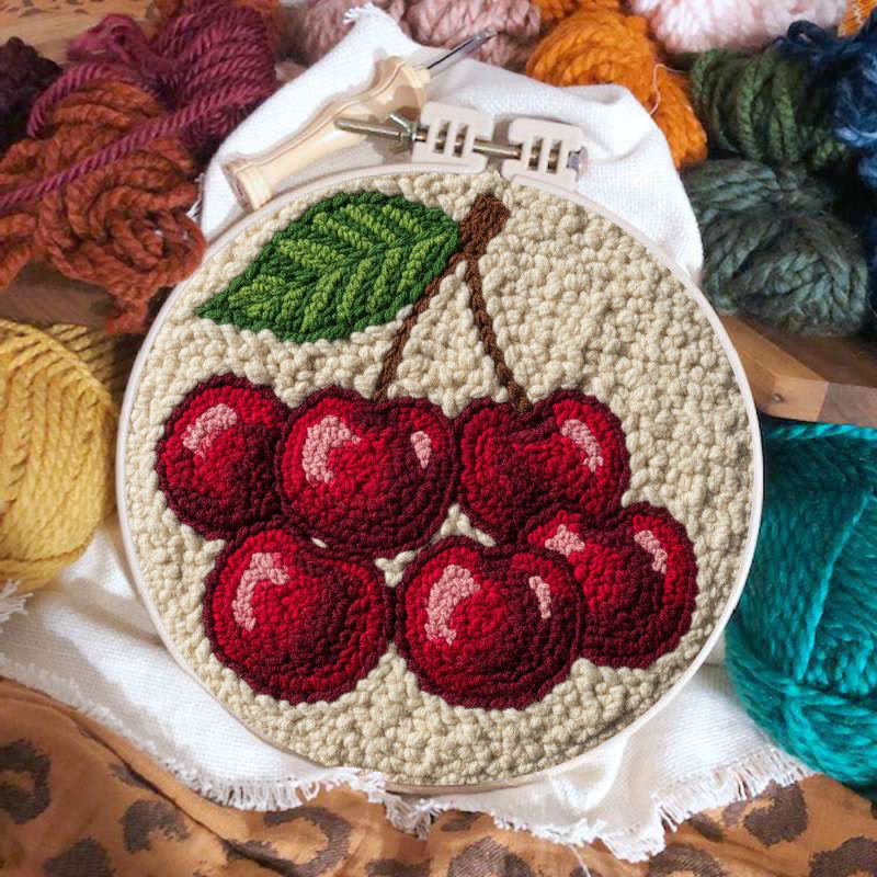 Plump Red Cherry Cluster Punch Needle Kit – Simple Handmade Project | Exquisite Decor Pendant