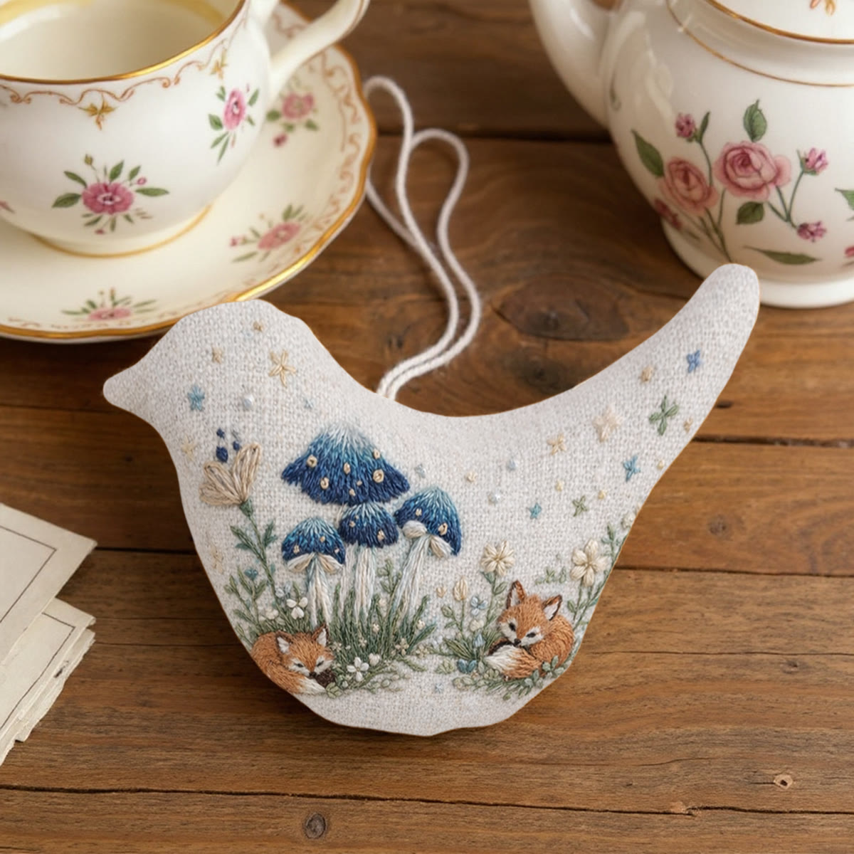Rubbyoo Bird-shaped Embroidery Kit - Sleeping Fox And Mushroom | Woodland Fairy Tale Gift | Wall Gallery Decor - image 5