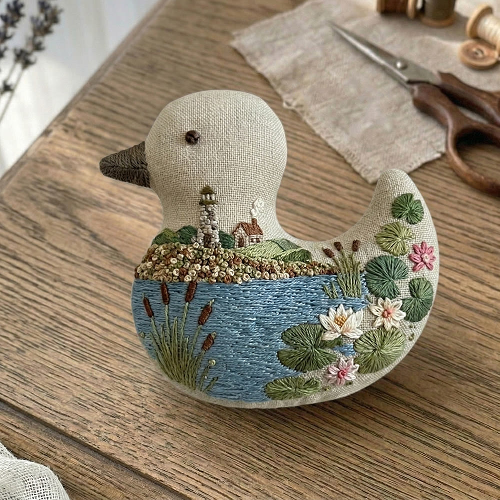 Rubbyoo Duck Embroidery Kit - Water Town Lotus | Lovely Handmade Gift | Exquisite Small Ornament